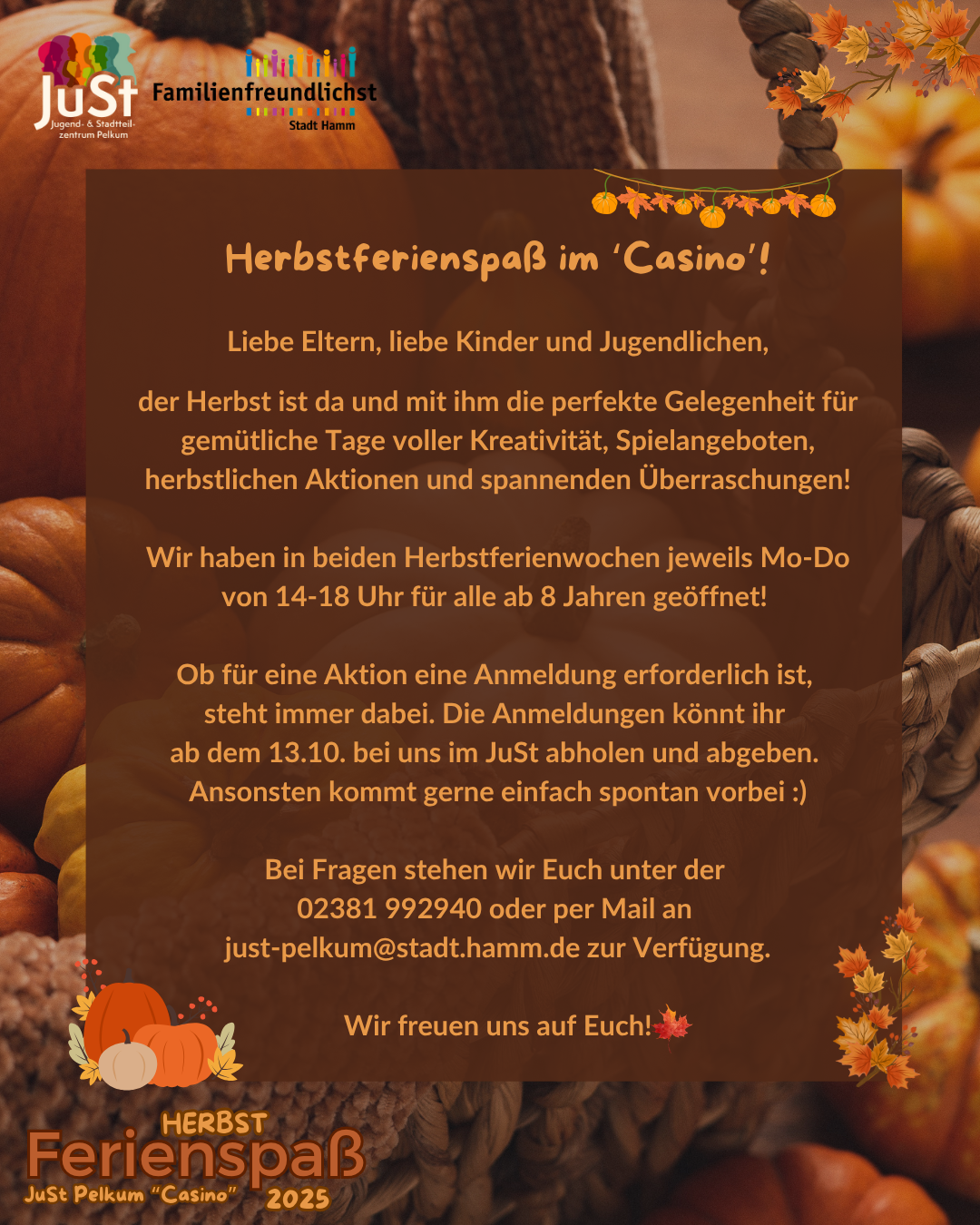 Die Herbstferien stehen vor der Tür und damit auch der Herbstferienspaß 2025 im Casino!
