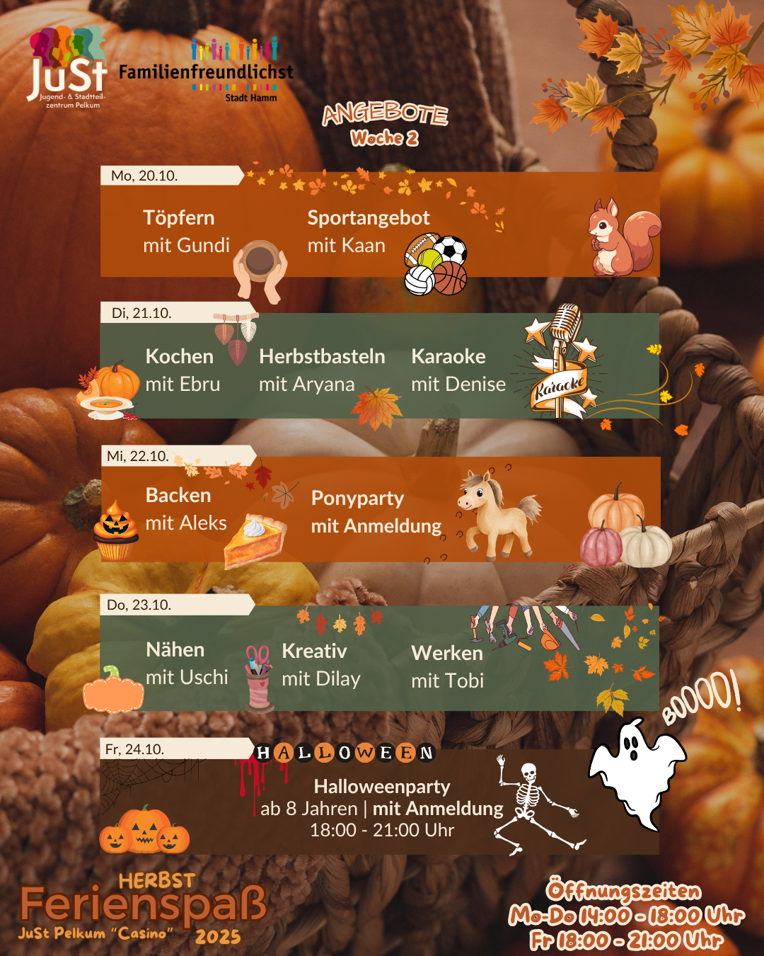 Anmeldungen für den Ausflug zum Hof Ligges, für den Ponytag als auch für die Halloweenparty, kann man sich ab dem 13.10. (14 Uhr) bei uns vor Ort abholen oder gemeinsam mit den Eltern/ Erziehungsberechtigten ausfüllen.